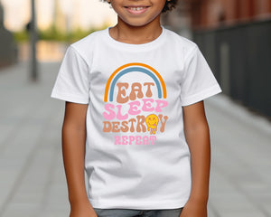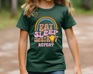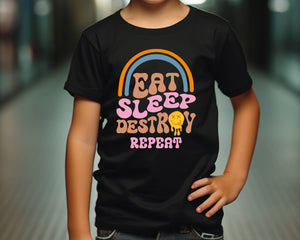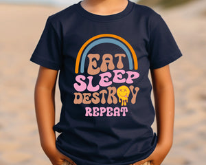 Eat Sleep Destroy Repeat Kids Funny T-Shirt - Cute & Comfy Graphic Tee for Boys & Girls - Perfect Gift for Birthdays, Playdates, Parties & Everyday Casual Wear
