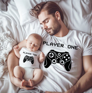 Father & Child Gamer Matching Shirts - Player One & Player Two | Perfect Father's Day Gift for Dad, Son, or Daughter | Fun Gaming Outfit