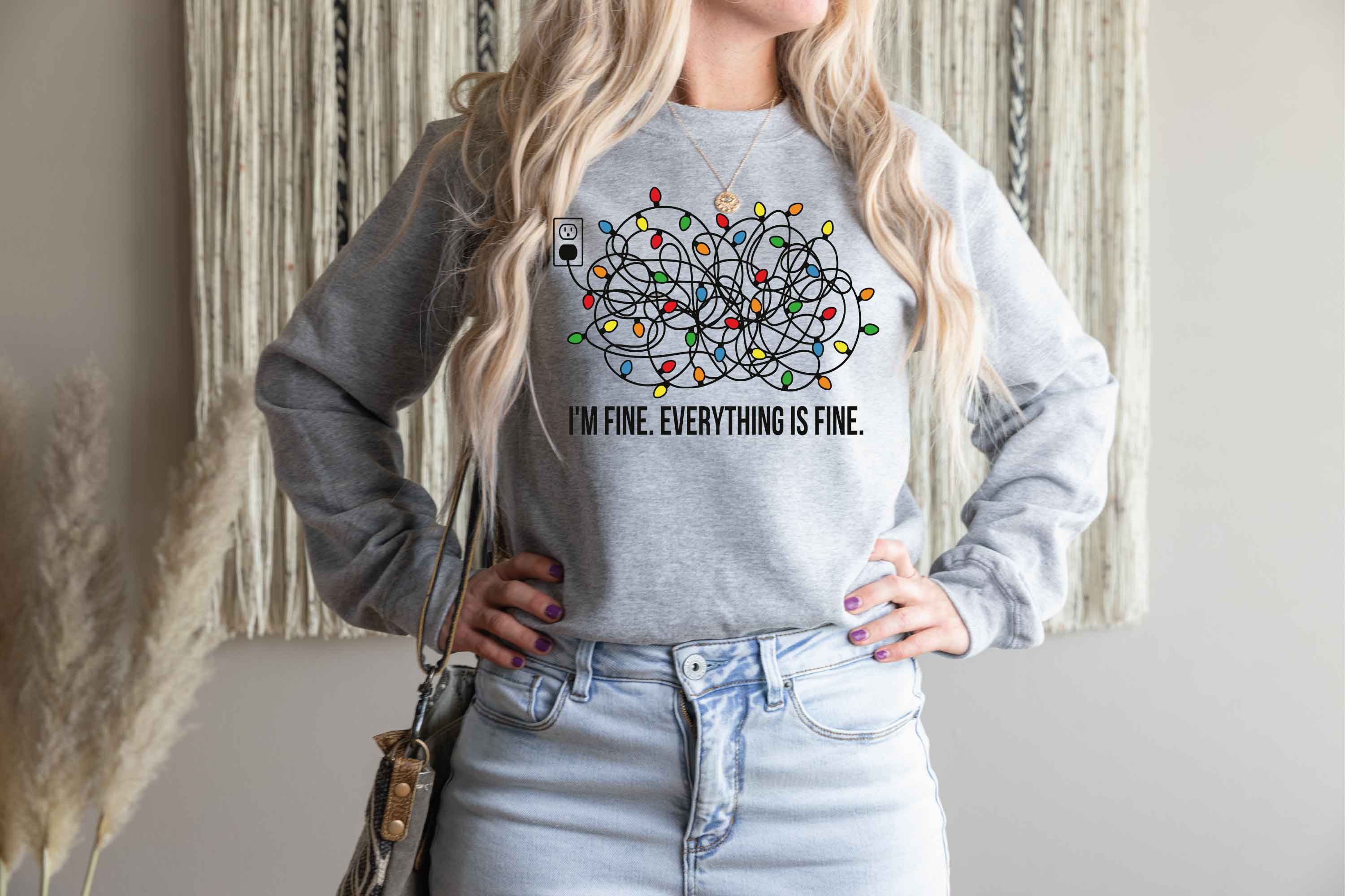 I'm Fine Everything Is Fine, Christmas Sweatshirt - Cosy Christmas Lights Sweater, Holiday Sweatshirts for Women, Perfect Gift#260
