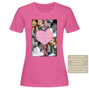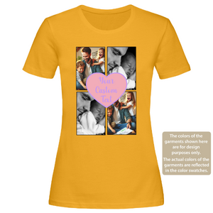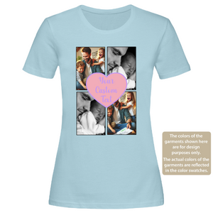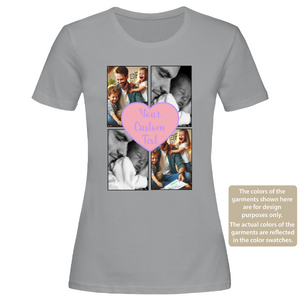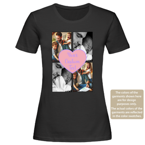 Custom Love Photo Collage Women T-Shirt – 4 Pictures with Text, Personalised Gift Tee