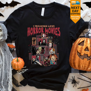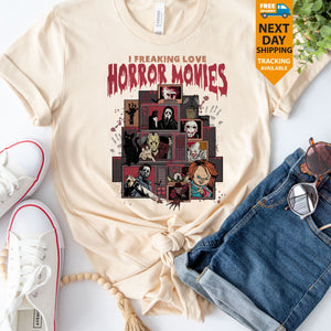 I Freaking Love Horror Movies T-Shirt | Emo Horror Tee | Funny Halloween Shirt | Scary Movie Graphic Tee | Spooky Halloween Top