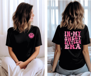 Celebrate turning 16 in style with the In My Sweet Sixteen Era Shirt! This cute and trendy tee is perfect for Sweet 16 parties, birthday squads, and unforgettable celebrations. A must-have gift for any birthday girl stepping into her sweet sixteen era! Comfortable, stylish, and party-ready.