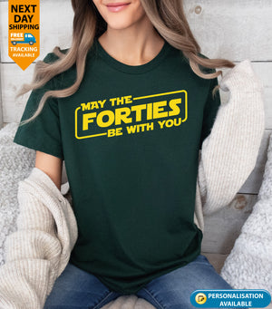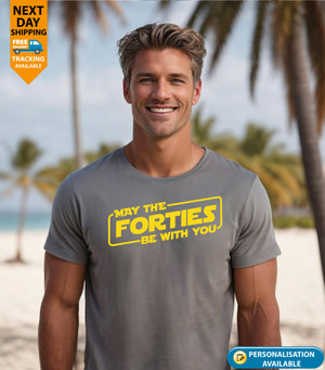 May the Forties Be With You" T-Shirt – Perfect 40th Birthday Gift for Men, Dad, Husband, or Him – Funny 40-Year-Old Birthday Shirt
